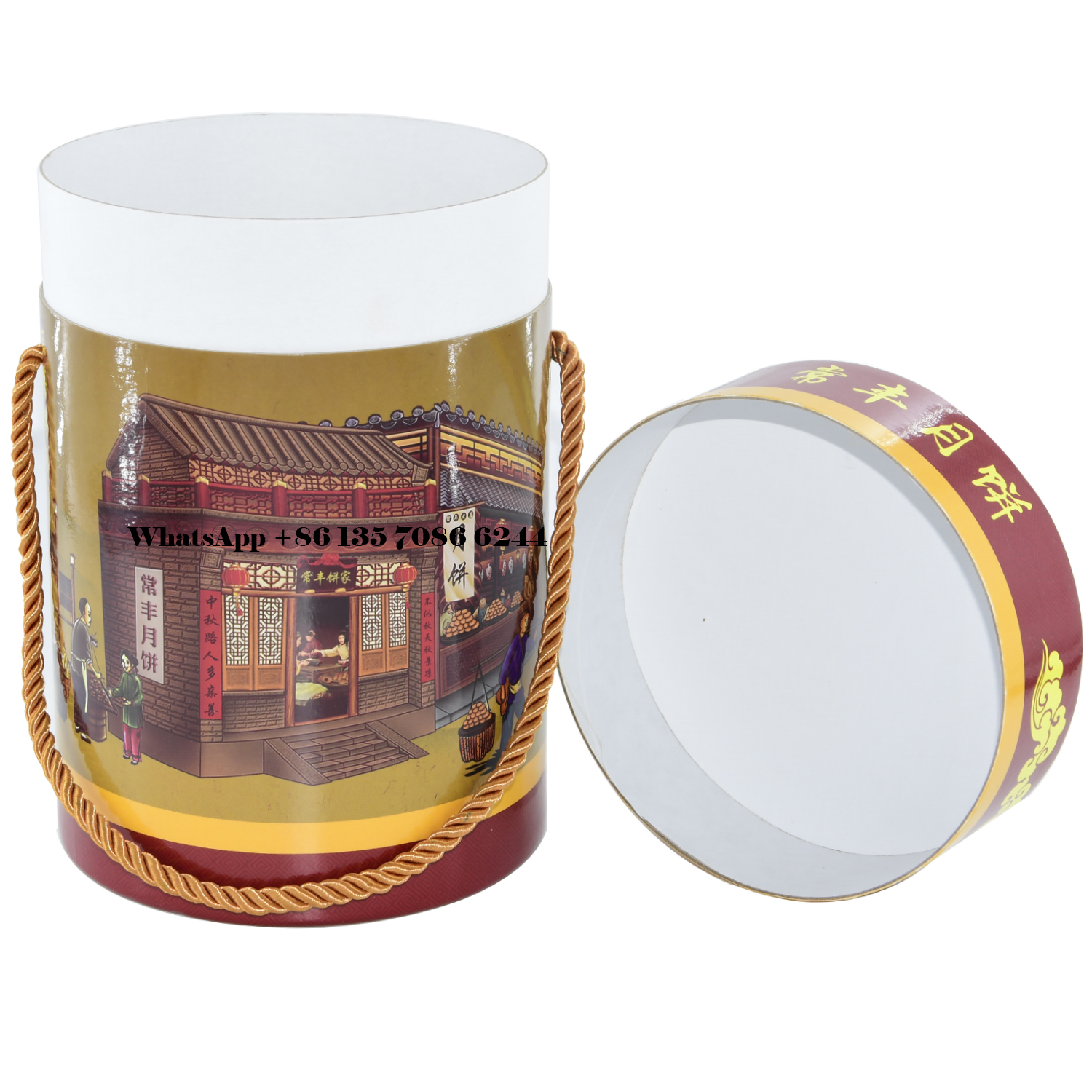 Custom Printed Cardboard Paper Round Box with Rope Handle