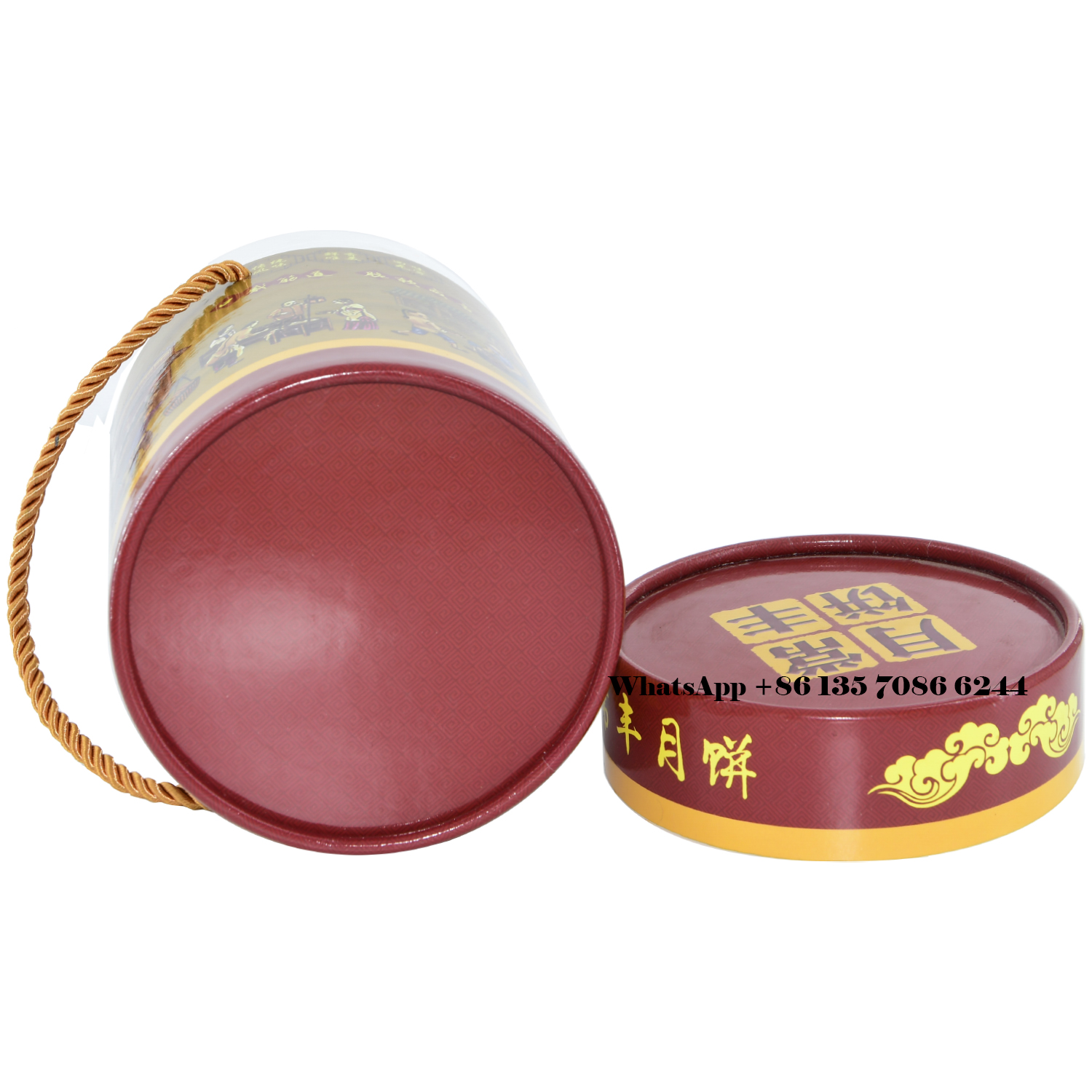 Caja redonda de cartón impresa personalizada con asa de cuerda